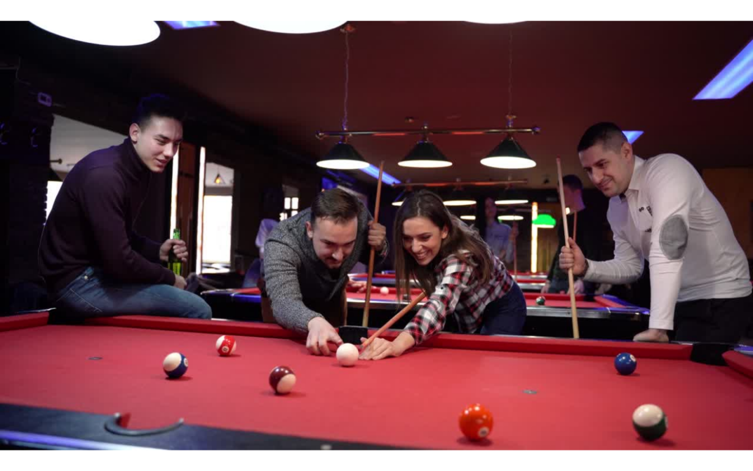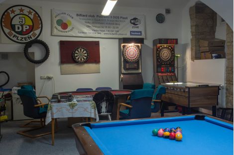 🎮 Široká zábava – kromě kulečníku také poker, šachy, stolní fotbal a šipky.